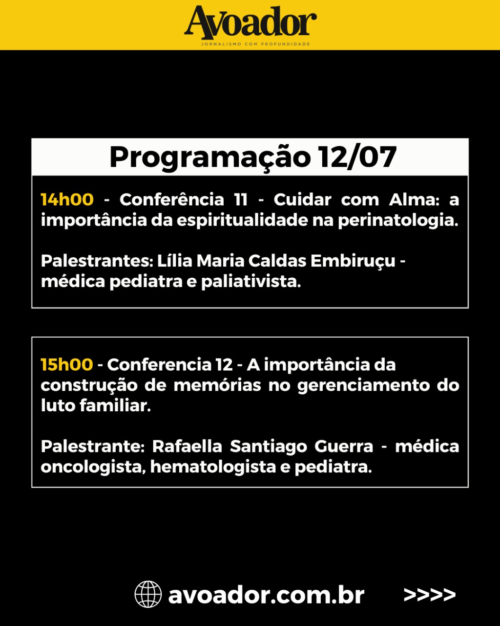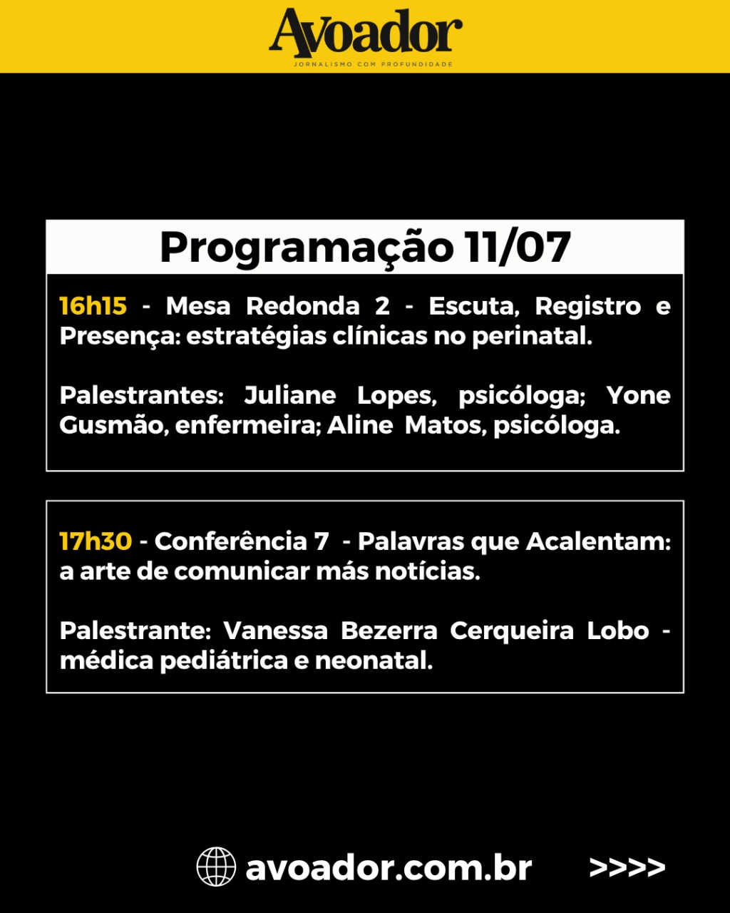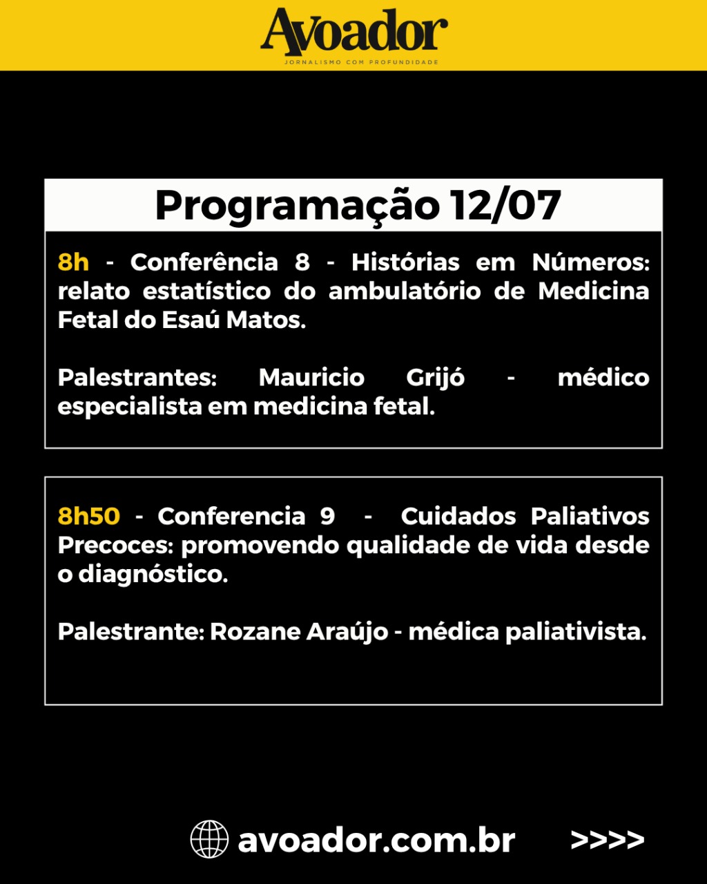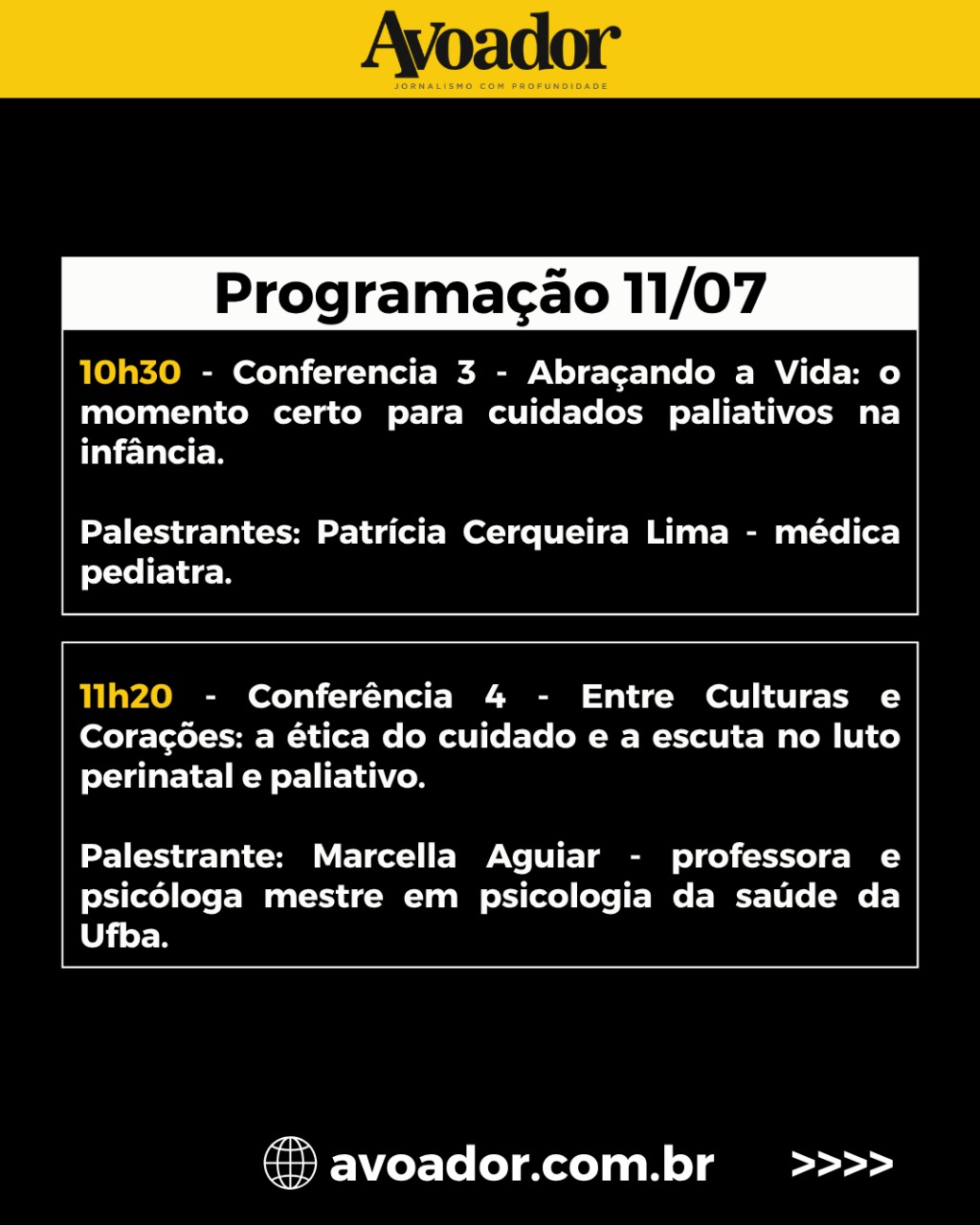 O evento acontece em três dias, entre 10 e 12 de julho, e é aberto ao público 9 de julho de 2025 Rian Borges*Nesta quinta-feira (10/07), a partir das 19h, no Teatro Glauber Rocha da Universidade Estadual do Sudoeste da Bahia (Uesb), será realizada a abertura do I Seminário de Cuidados Paliativos e Luto Perinatal do Sudoeste da Bahia. O evento acontece em três dias, entre 10 e 12 de julho, e é aberto ao público.