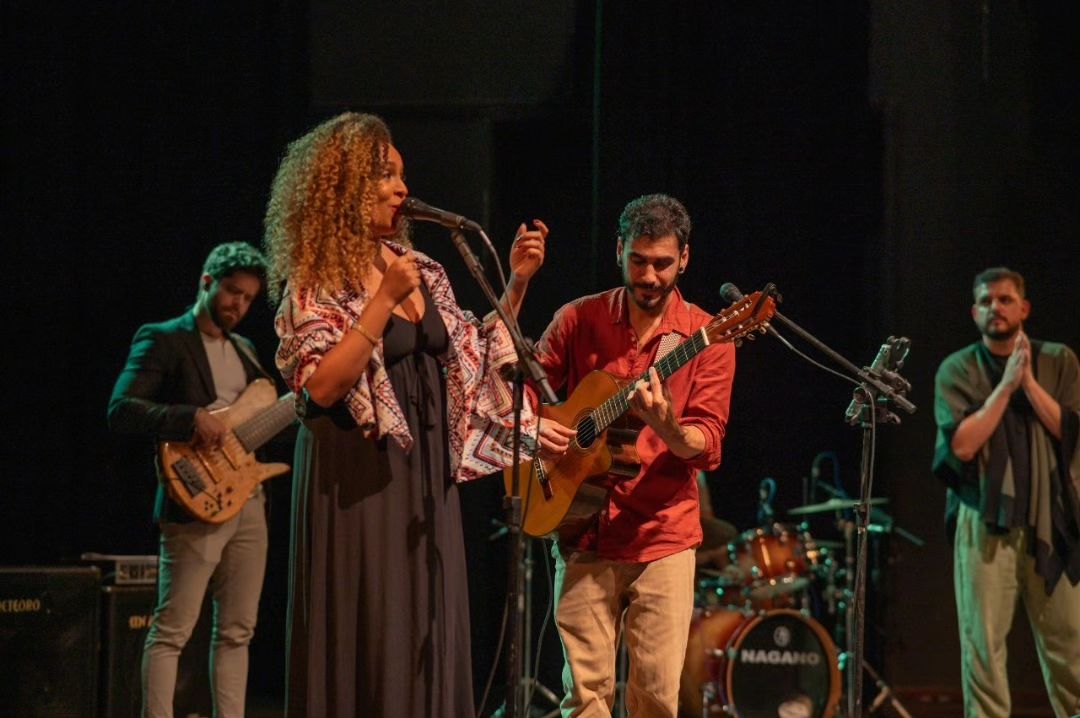 - Momento de show no Sarau “Somos Vozes”. Reprodução Instagram (@coletivosomosvozes)