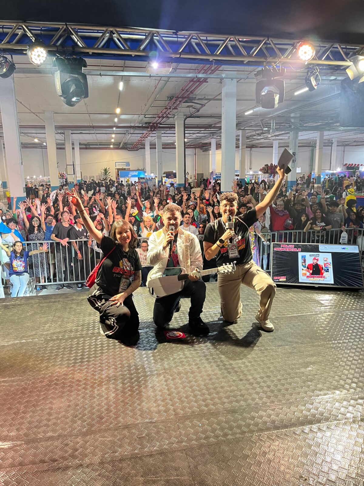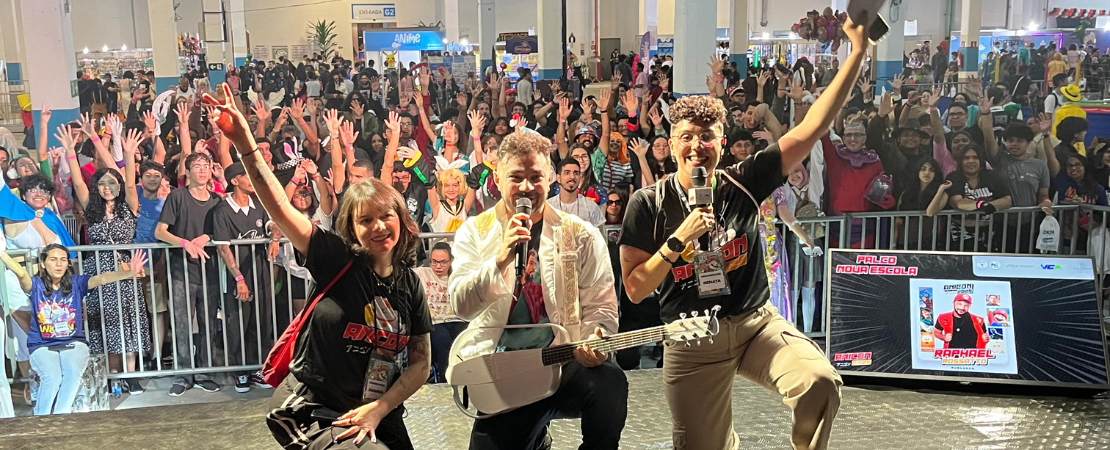 Antes de subir ao palco, Raphael falou sobre a experiência de estar em Vitória da Conquista e de participar do AniCon. “É a primeira vez que venho aqui e estou adorando a cidade. Estar em um evento como esse é incrível, trabalhar com esse tipo de entretenimento e ter o contato direto com público, com as pessoas que admiram o nosso trabalho, é muito legal”, disse.