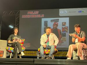 O dublador Raphael Rossatto esteve no Palco Nova Escola, no Anicon 2025. Foto: Sarah Andrade