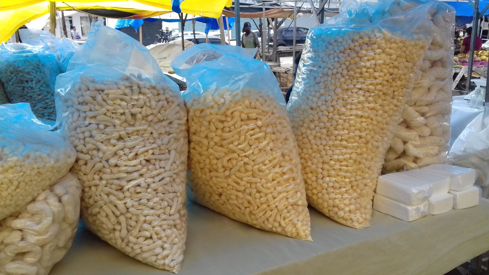 Vera Lúcia, 45 anos, tem um riso fácil e mãos ágeis para segurar o medidor de biscoitos e não deixar o freguês esperar. Ela comanda a barraca de lona azul desde novembro de 2018, além de outros dois pontos na feira. Com esses empreendimentos, tem conseguido garantir uma renda e a sua independência financeira.
