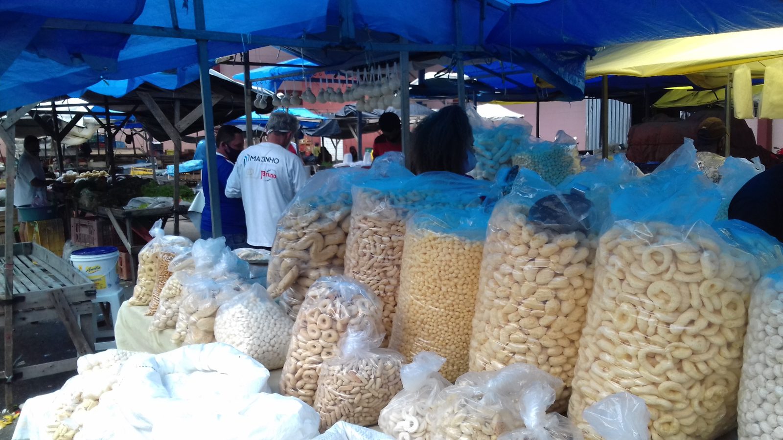 Há dois anos Vera Lúcia Rosa Gomes decidiu vender biscoitos e, atualmente, já é a responsável por mais duas barracas 23 de dezembro de 2020 Andressa Oliveira“Tem biscoito de quê?”, pergunta a cliente. “Batata doce, requeijão, orégano, erva doce, amanteigado, coco, leite condensado…”, responde Vera Lúcia Rosa Gomes, que vende mais de 10 tipos de biscoitos de variados sabores, do salgado ao doce. Os quitutes estão em uma barraca de lona azul, que está montada com placas de madeira e barras de metal, na parte de baixo do Mercado Municipal de Vitória da Conquista do Bairro Brasil.