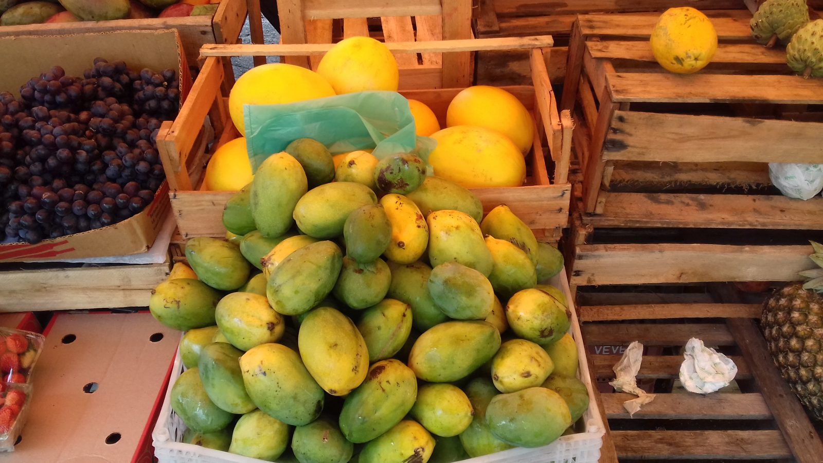 No mesmo local, há uns dois metros de distância, ela também tem outras duas barracas, em uma é vendido só melancia, cuja responsabilidade está com a filha mais nova, e a outra, que vende mamão e manga, estão os dois sobrinhos. As frutas ela também pega para revender. “Eu vou vendendo um pouco de cada coisa”, comentou.