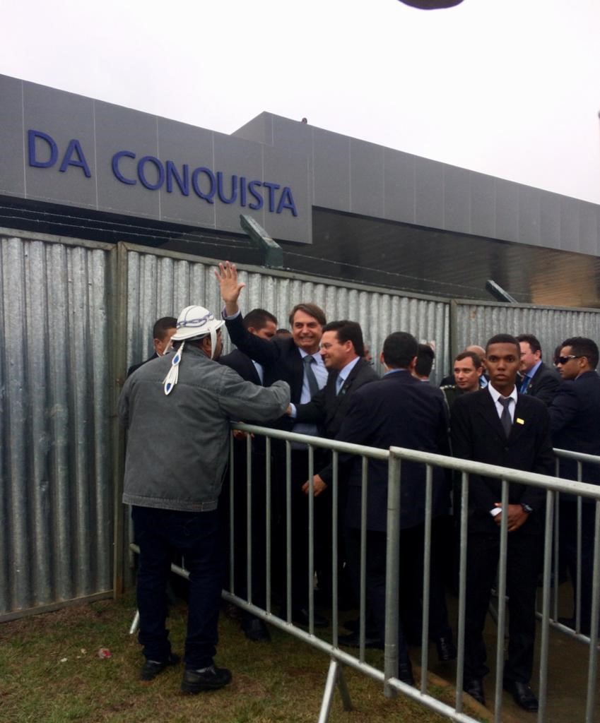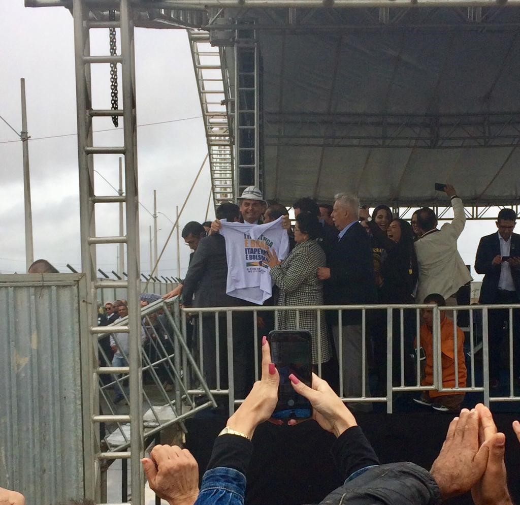 “É um ato bem importante para nossa cidade, para o desenvolvimento de Vitória da Conquista. Eu creio que vai trazer muito investimento. E estou aqui porque o nosso presidente está visitando a nossa cidade. É diferente a presença de um representante nacional”, afirmou empolgada Marilene Silva, corretora imobiliária. Marilene não era a única seduzida pela presença do chefe de planalto. Maria de Lurdes Silva, aposentada, saiu da Barra do Choça para prestigiar o evento: “sou evangélica, vim porque votei em Bolsonaro pelos bons costumes da família e também pelo desenvolvimento da região.” Havia uma presença representativa de idosos que não estavam incomodados por ficarem do lado de fora da solenidade.