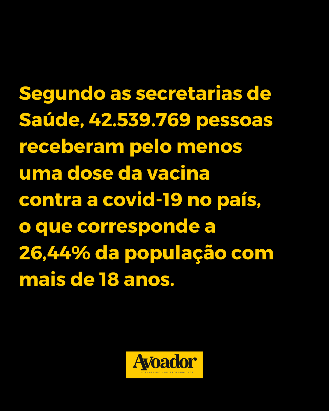 Em relação à vacinação, o país está em 56º lugar no ranking mundial de países quando se considera o número de doses de vacina aplicadas em relação à população. Segundo as secretarias de saúde, 42.539.769 pessoas receberam pelo menos uma dose da vacina contra a covid-19 no Brasil, o que corresponde a 26,44% da população com mais de 18 anos.