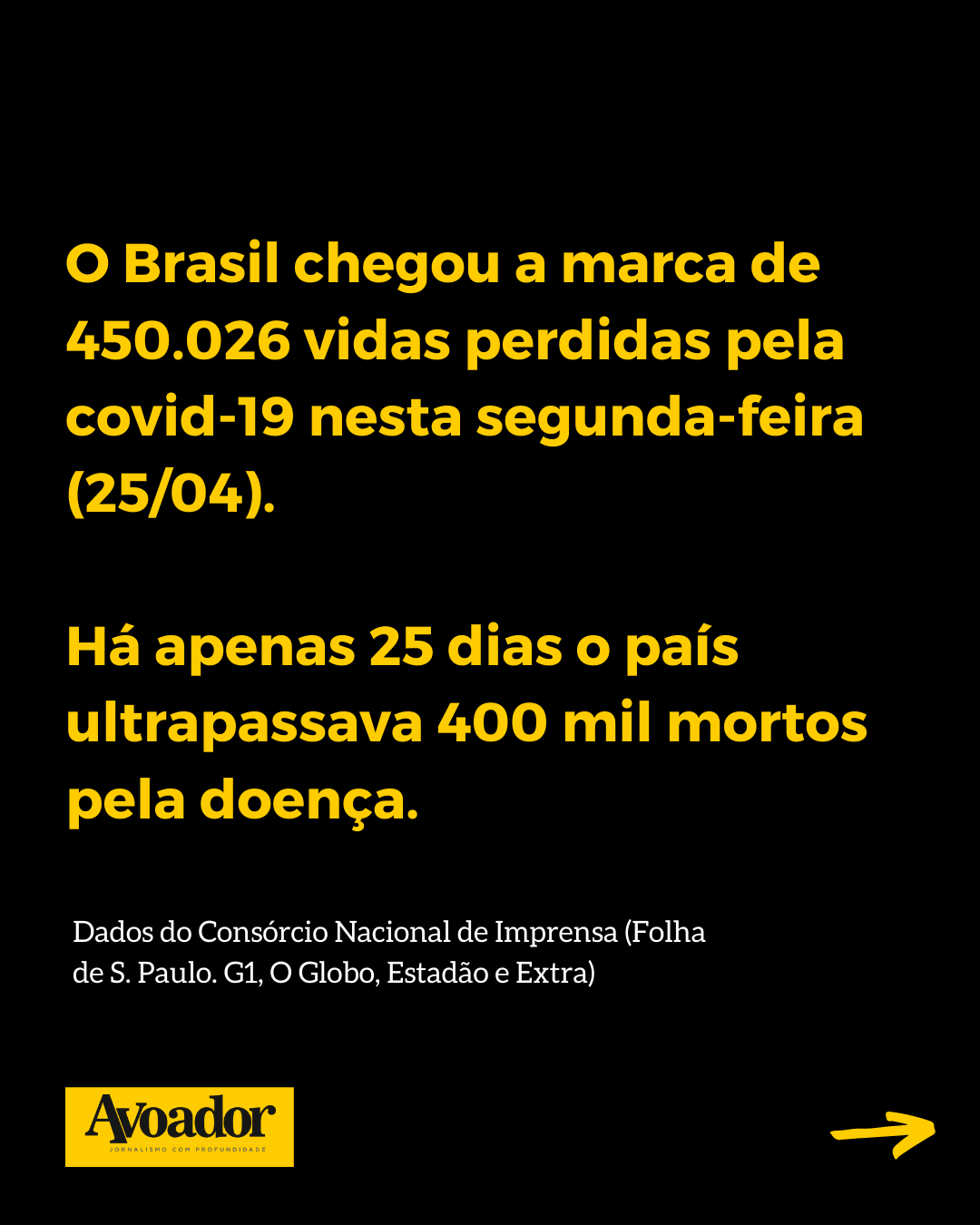Brasil registra 450.026 vidas perdidas por covid-19 nesta segunda (24)
