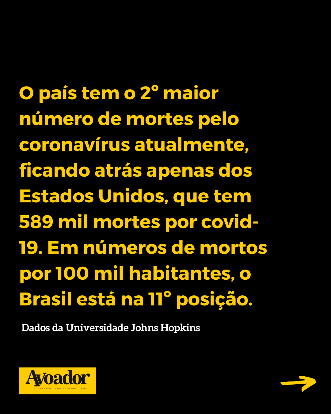 O Brasil só perde em número de mortos pelo novo coronavírus para os Estados Unidos, em primeiro lugar com 589 mil óbitos. Em 14 estados brasileiros, as taxas de ocupação de unidades de terapia intensivas (UTIs) ultrapassam os 80% de leitos ocupados, o que mostra que os sistemas de saúde seguem sobrecarregados com doentes de covid-19.