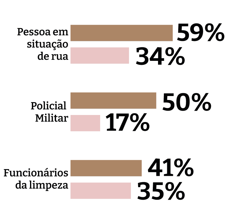 A divisão entre profissões é marcante: entre os vacinados, negros são maioria de pessoas em situação de rua; já brancos são a maior parte dos vacinados em várias profissões, como bombeiro, médicos e enfermeiros.
