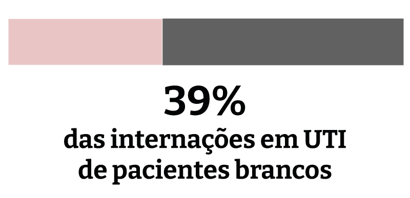Os dados também apontam que a mortalidade — isto é, a quantidade de pessoas que morrem em relação a quem tem a doença — foi maior entre negros que entre brancos: 92 óbitos a cada 100 mil habitantes em negros, para 88 em brancos. A reportagem contabilizou as mortes decorrentes de quadros graves de problemas respiratórios (SRAG) causados pelo coronavírus e registrados pelo Ministério da Saúde até 22 de fevereiro.