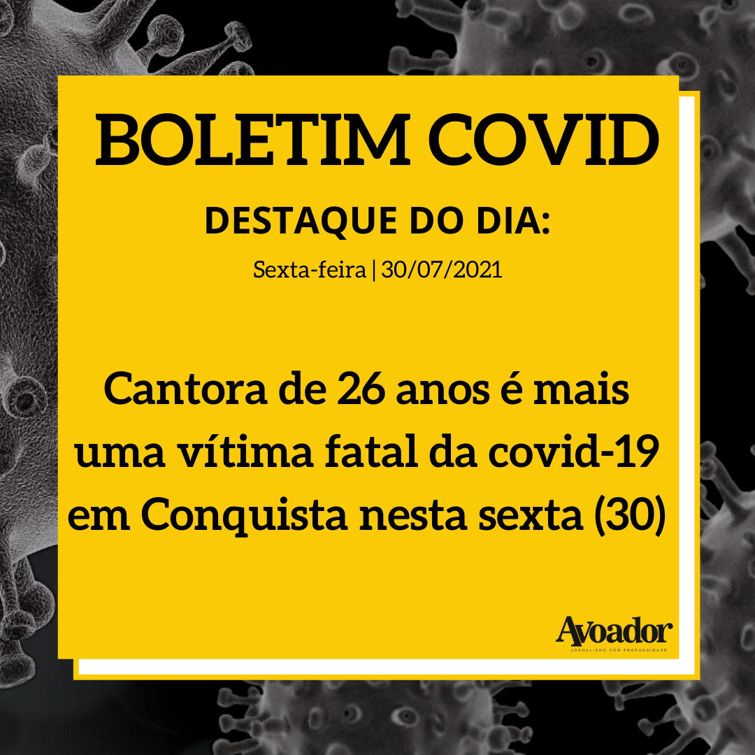 Confira a atualização dos números da covid-19 desta sexta-feira, 30 de julho de 2021 30 de julho de 2021 Gabriela SouzaEntre as duas vítimas fatais da covid-19, desta sexta-feira (30/07), em Vitória da Conquista, está a cantora e compositora Ibirataense, Lanna Rizzi. Com mais essas mortes, o município chega a 586 vidas perdidas para a doença, desde que o primeiro registro foi realizado em 13 de abril de 2020