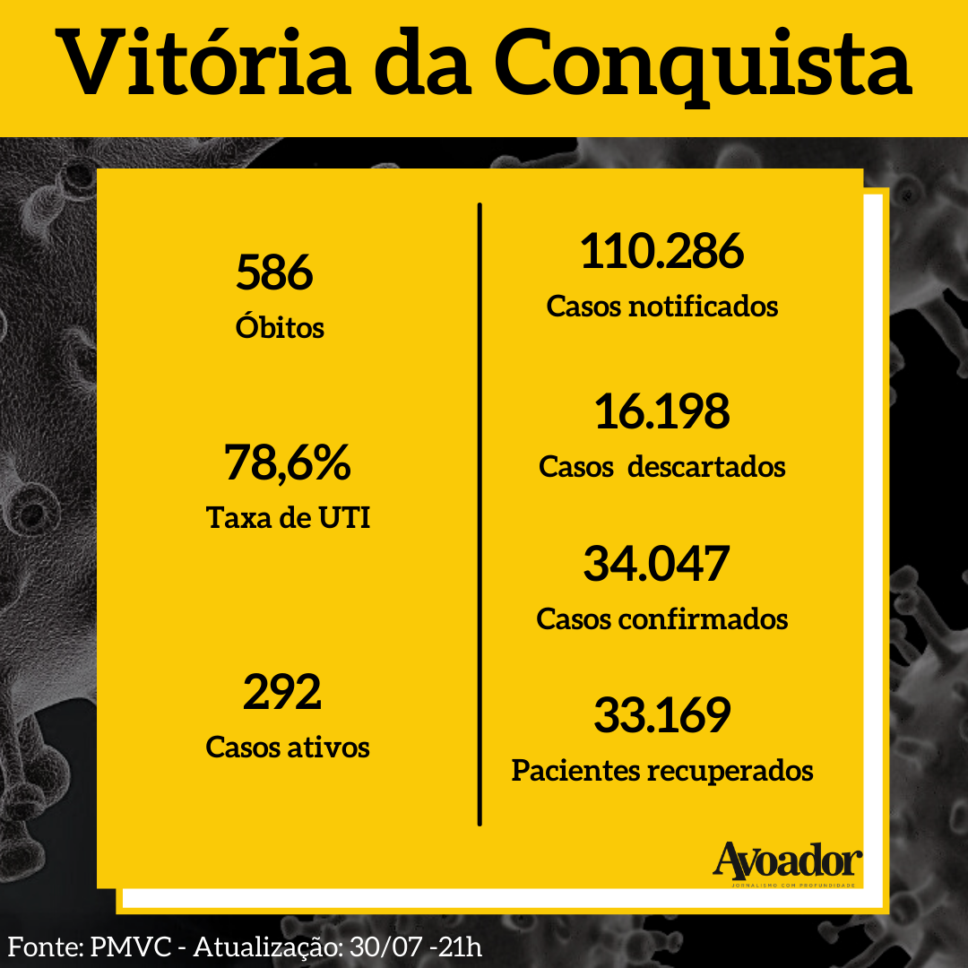 Conferira abaixo os dados de Vitória da Conquista, da Bahia, do Brasil e do mundo.