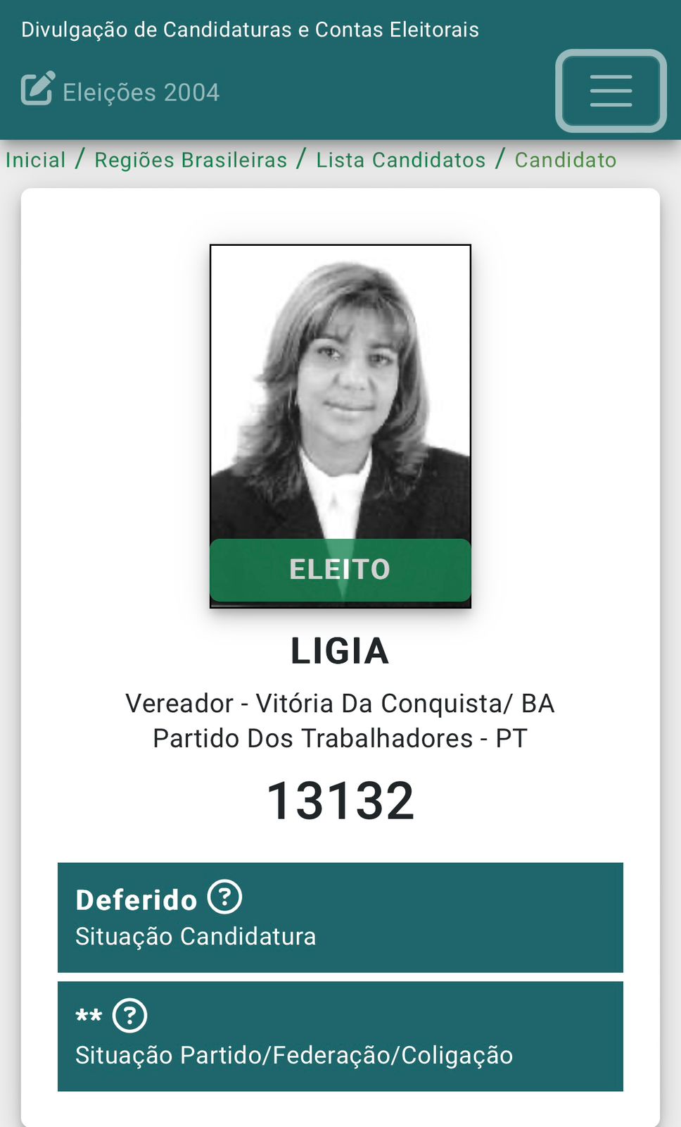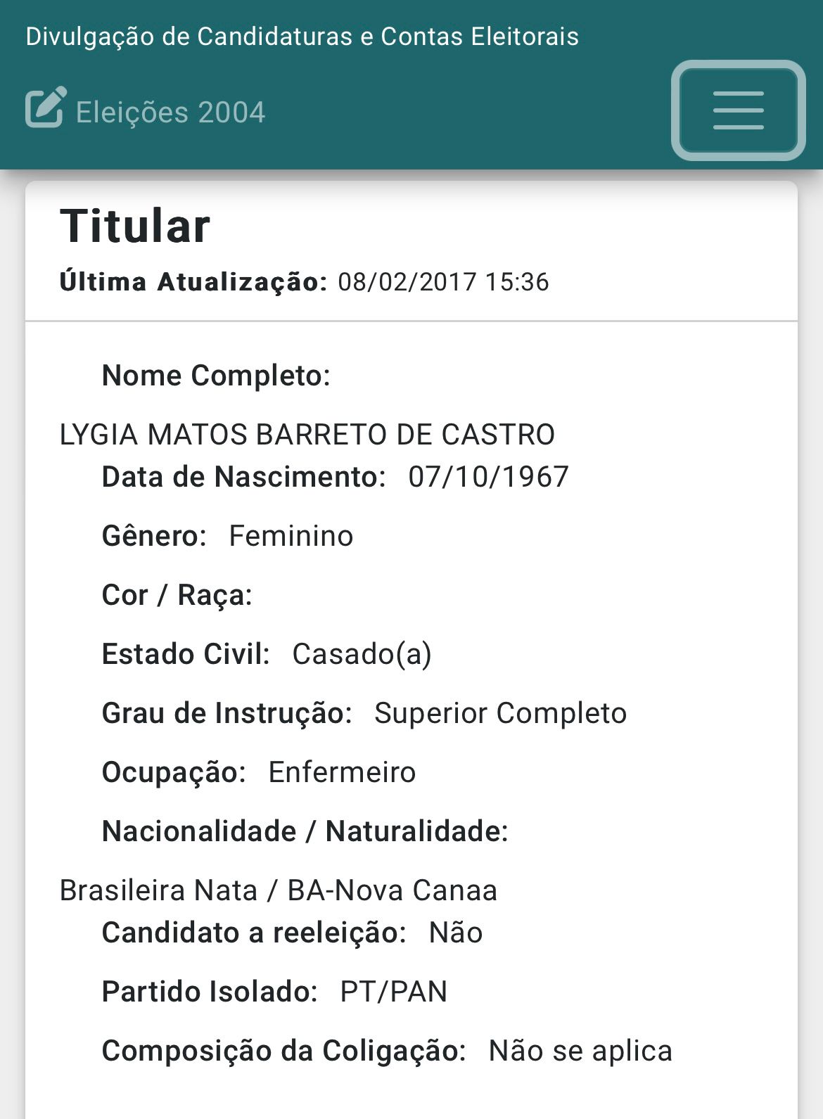 - Dados declarados em candidatura no DivulgaCand em 2004.