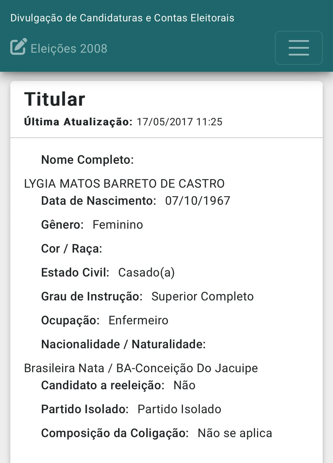 - Dados declarados em candidatura no DivulgaCand em 2008.
