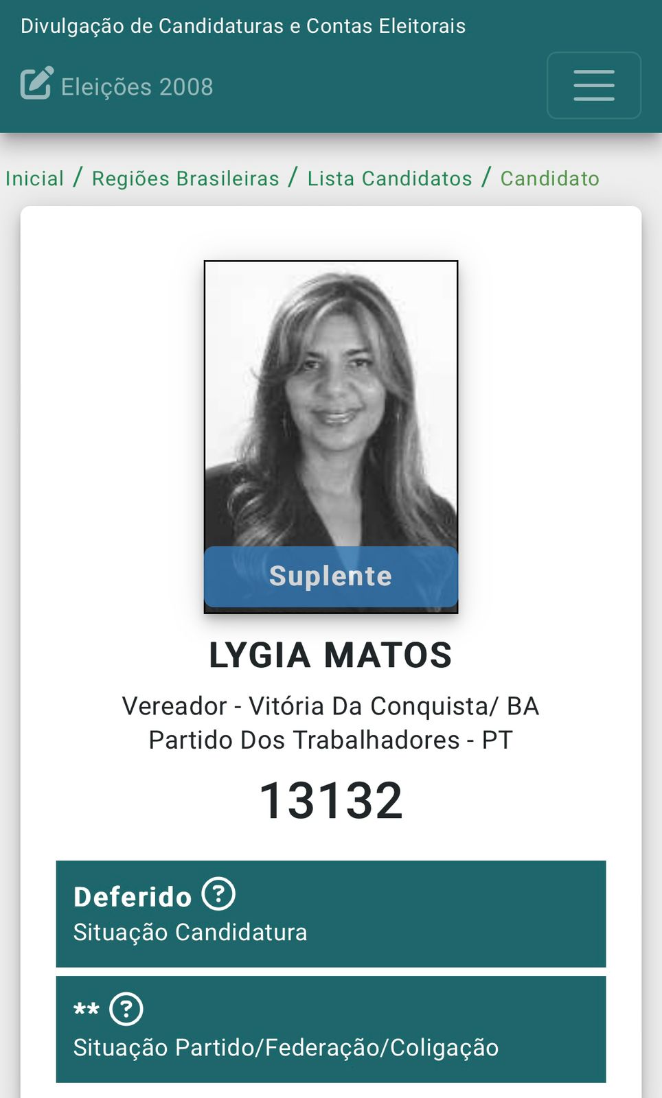 - Acesso a candidatura de Lygia Matos nas eleições municipais de 2008.