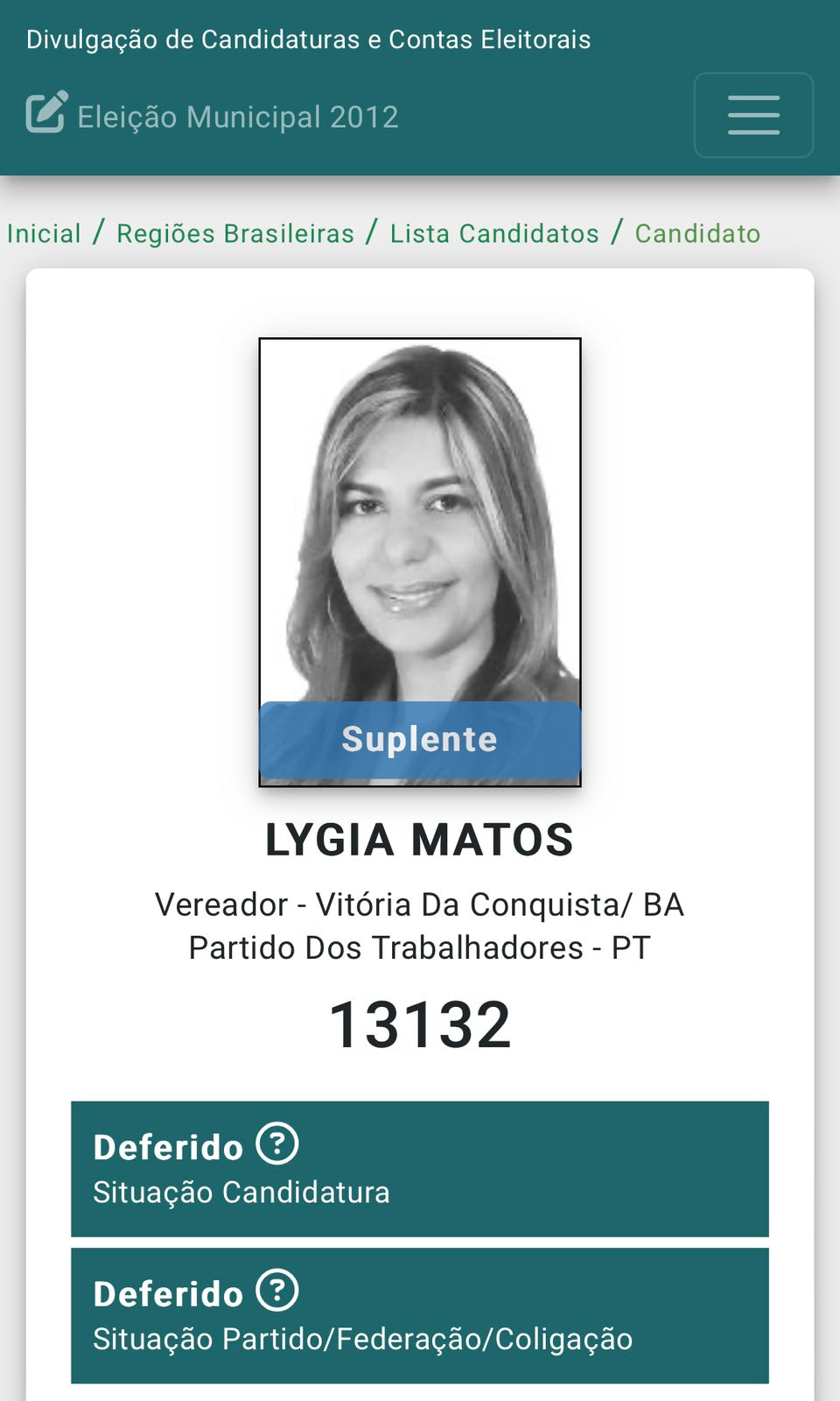 - Acesso a candidatura de Lygia Matos nas eleições municipais de 2012.