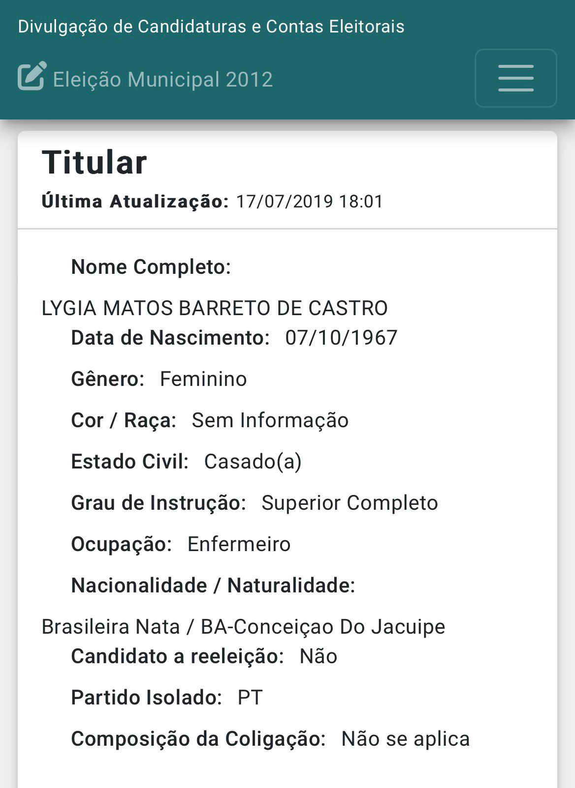 - Dados declarados em candidatura no DivulgaCand em 2012.