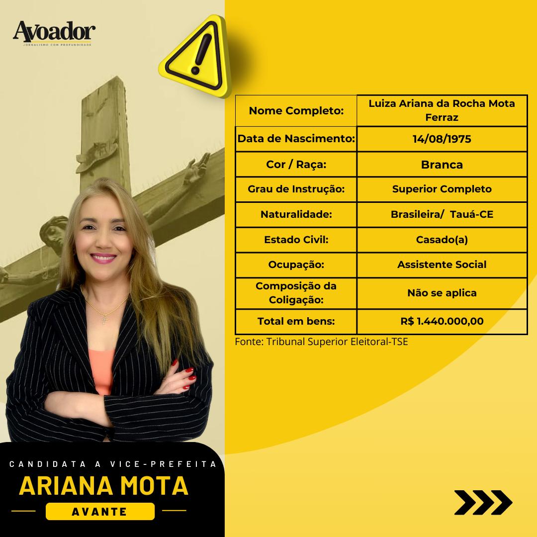 A candidata a vice-prefeita, Luiza Ariana da Rocha Moa Ferraz, é de Tauá, interior do Ceará, e nasceu em 14 de agosto de 1975. Ela declarou que é branca, ser assistente social e possuir R$1.440.000,00 em bens.