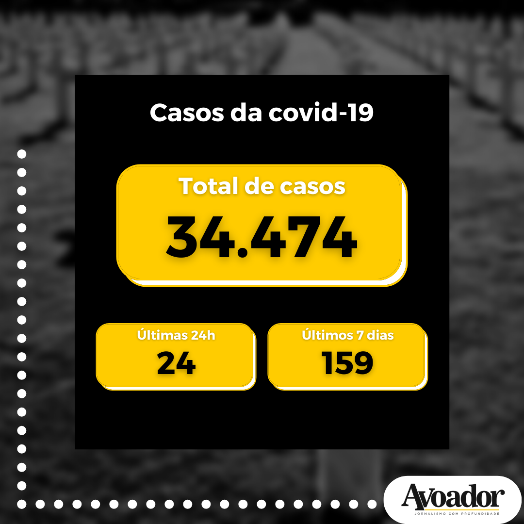 Segundo a Secretaria Municipal de Saúde, foram confirmados 24 novos casos da covid-19 nas últimas 24 horas. Desde o início da pandemia, o município já registrou 34.474 pessoas infectadas com a doença e, até o momento, 159 pessoas estão em recuperação e podem transmitir a doença.