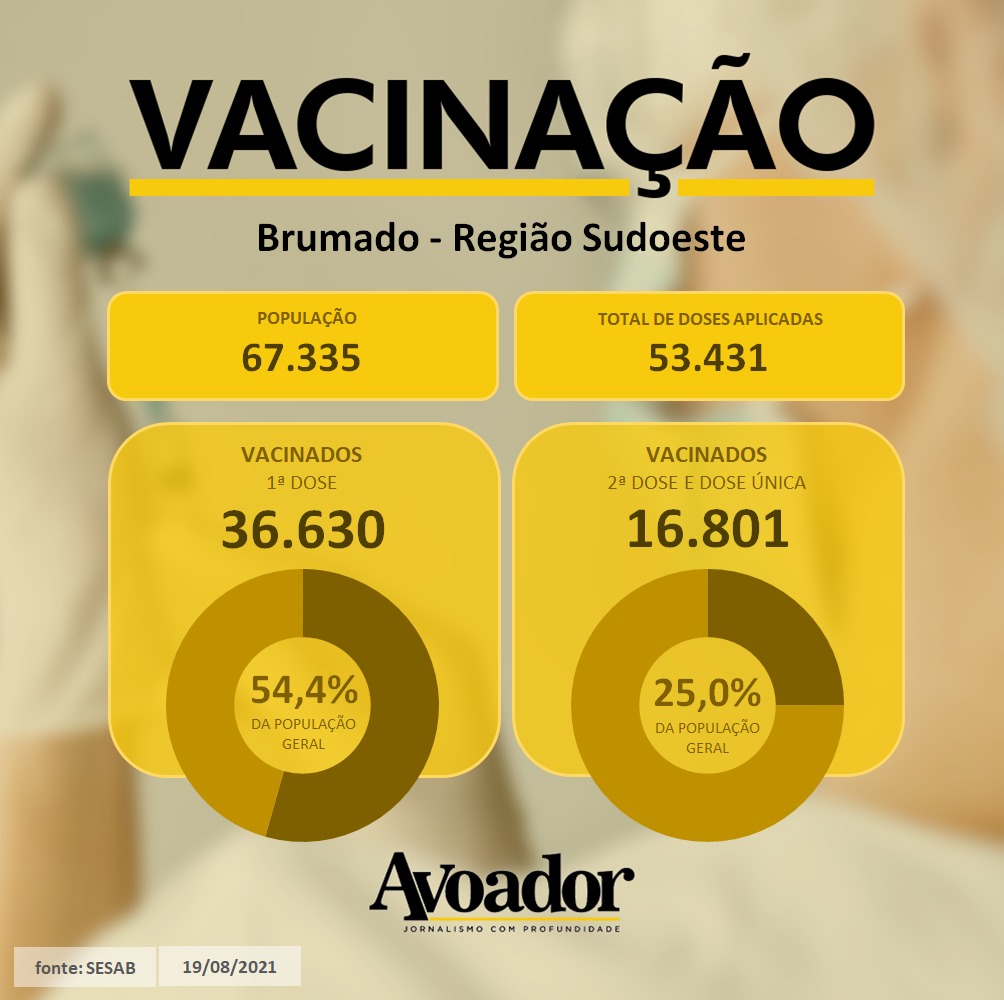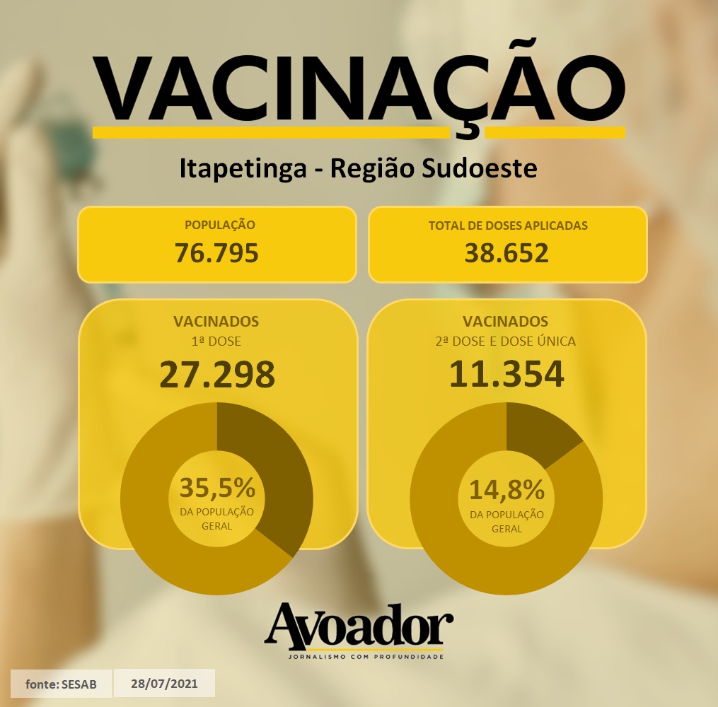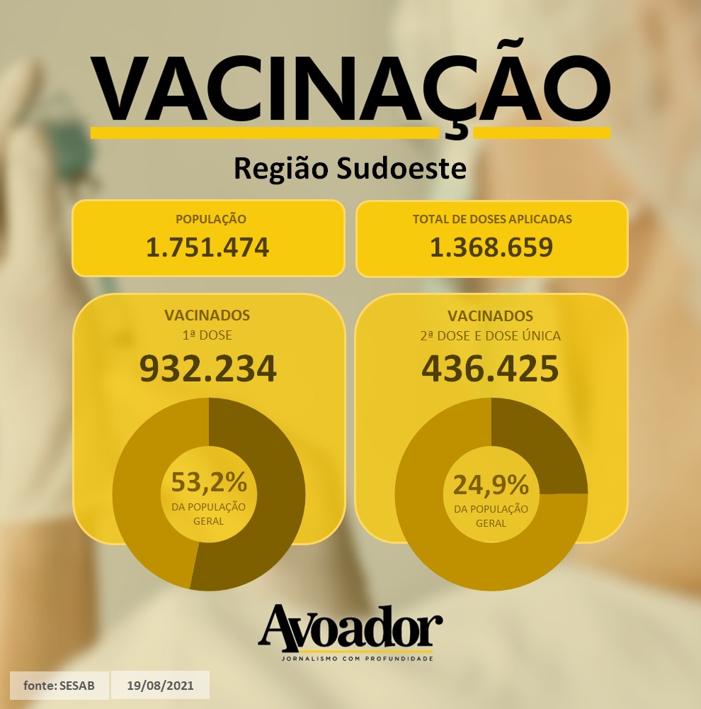 Condira abaixo e saiba mais sobre a vacinação em Vitória da Conquista e em cidades da região Sudoeste e Sul, desde o início da aplicação até esta quinta-feira, 19 de agosto.