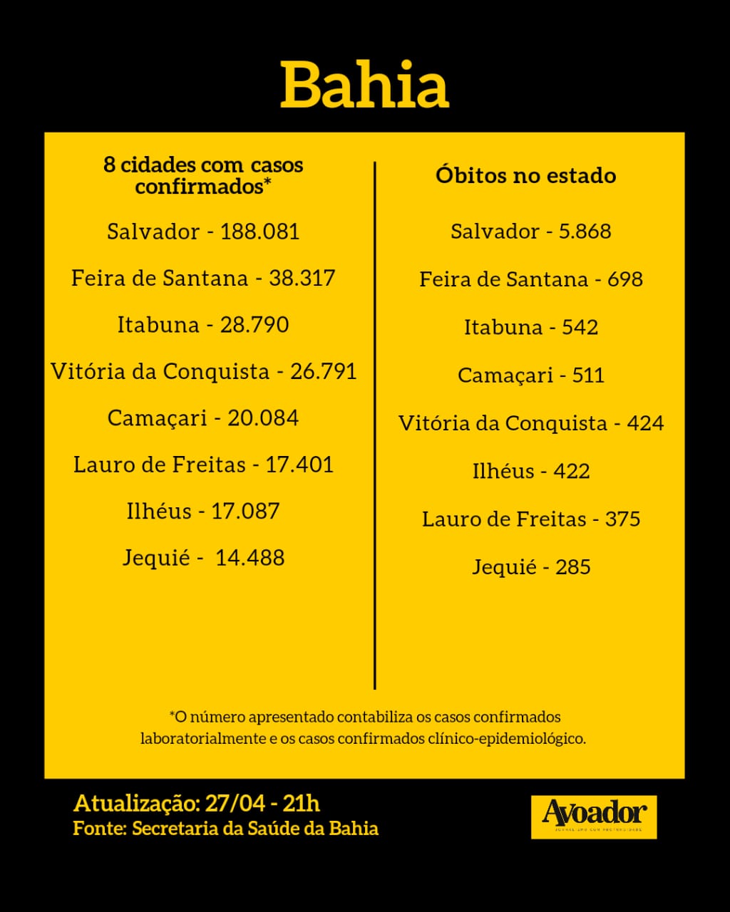 Fonte: PMVC/Secretaria da Saúde da Bahia/Ministério da Saúde/Universidade de Johns Hopkins