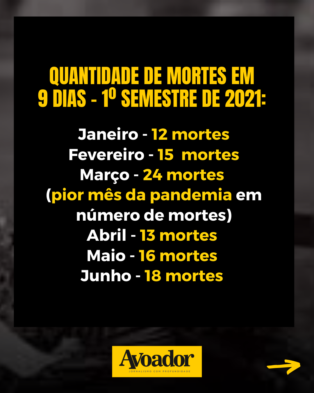 De acordo com os dados do Boletim Epidemiológico Municipal, no primeiro semestre de 2021, considerando um período de nove dias por mês, foram contabilizadas as seguintes mortes causadas pelo novo coronavírus: 12 em janeiro, 15 em fevereiro, 24 em março, 13 em abril, 16 em maio e 18 em junho. Junho é considerado o segundo pior mês, com o maior número de mortes, perdendo apenas para março.