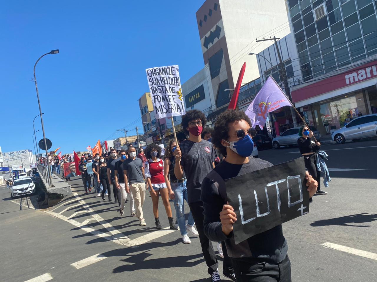 No protesto houve a preocupação com o distanciamento entre os participantes, que buscaram ficar longe uns dos outros. Também foram distribuídos de água e álcool pelas entidades que estiveram à frente a organização, como Adusb, Fórum Sindical, PCdoB, PT, Coletivo de Juventude.