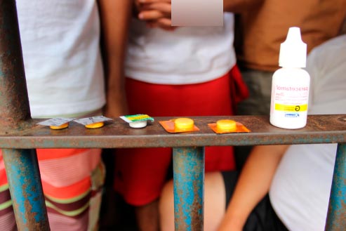 Naquele mês, o marido de Lúcia* começou a apresentar os primeiros sintomas da doença, com falta de paladar e olfato, febre e dor no corpo. Em Guareí, há pouco mais de um ano, diante da falta de assistência médica e da ausência de fornecimento de remédios na unidade, ela teve que enviar para ele antibiótico, anti-inflamatório e remédio para dor. Lúcia conta que os internos chegam a dividir uma cartela de remédios com a cela inteira.