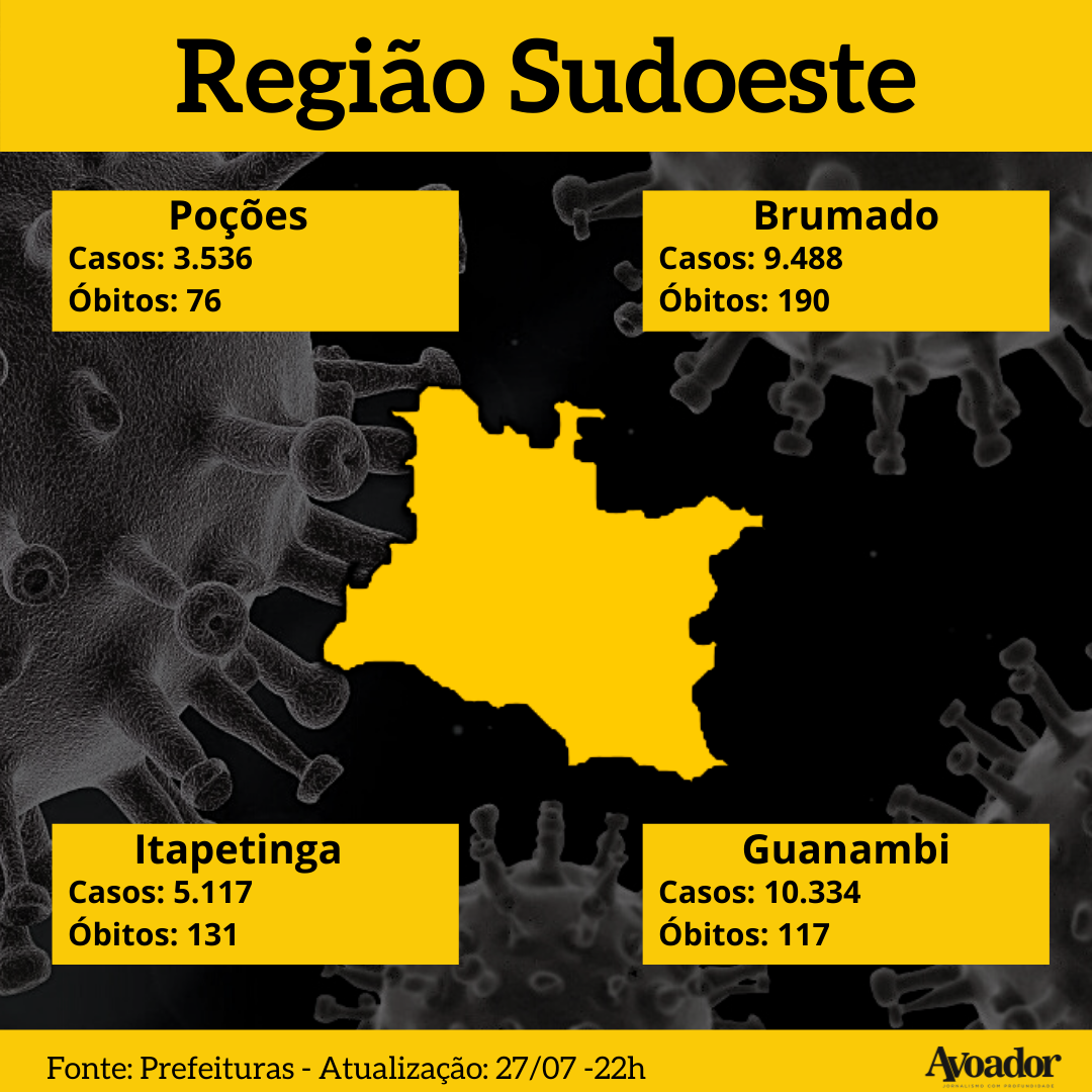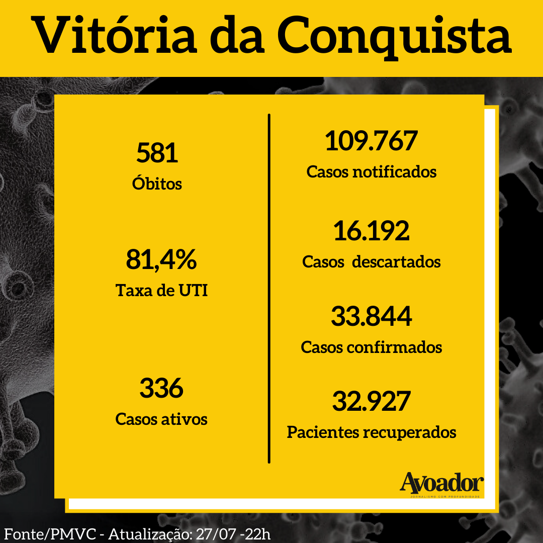 De acordo com o Boletim Epidemiológico Municipal, a primeira vítima é uma mulher de 87 anos, moradora do bairro Jardim Guanabara. Ela estava internada no Hospital Geral de Vitória da Conquista (HGVC) desde o dia 16 de julho e morreu ontem (26/07). A outra morte é de um homem de 59 anos, residente do bairro Morada do Bem Querer. Foi hospitalizado no dia 22 de junho no Hospital Samur e faleceu nesta terça-feira (27/07).