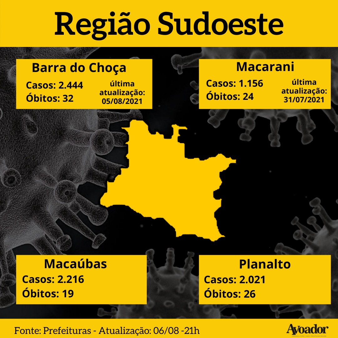 Confira a atualização dos números da covid-19 desta sexta-feira, 6 de agosto de 2021 6 de agosto de 2021 Beatriz OliveiraNesta sexta-feira (06/08), uma mulher de 77 anos, moradora do bairro Boa Vista, foi a vítima fatal da covid-19 em Vitória da Conquista. Com mais essa morte, a cidade chega a 591 vidas perdidas para a doença. De acordo com o Boletim Epidemiológico da Secretaria Municipal de Saúde, a vítima estava internada no hospital Samur, onde faleceu nesta sexta-feira (06).