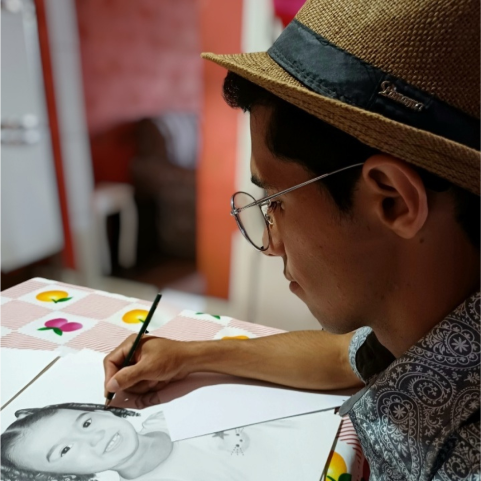 Lucas Jardim Gomes: “Conseguir observar algo e reproduzir no papel é impressionante. Eu não imaginava que iria conseguir fazer, é um dom.” Fotos: Arquivo pessoal