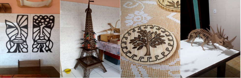 O primeiro passo, segundo o marceneiro, é criar o desenho no computador, que é a máquina responsável por dar a vida a esta arte. Em seguida, há uma impressão, que, ao invés de imprimir no papel, corta o material escolhido. Essa máquina, chamada de CNC (Controle Numérico Computadorizado), opera em três eixos: x, y e z, cada um cortando em uma direção diferente.