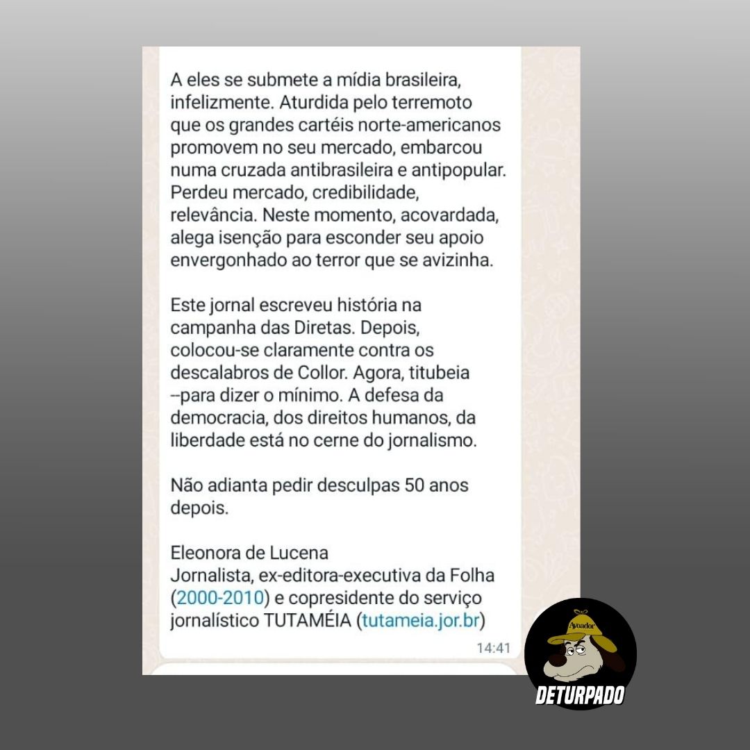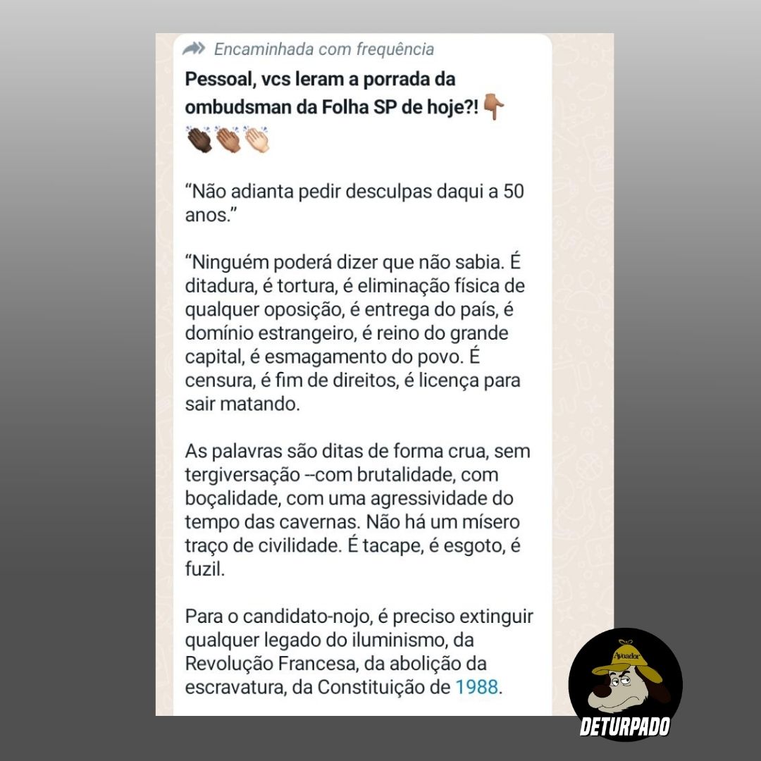 #DETURPADO | Mensagem atribuída ao Ombudsman da Folha de S. Paulo é deturpada