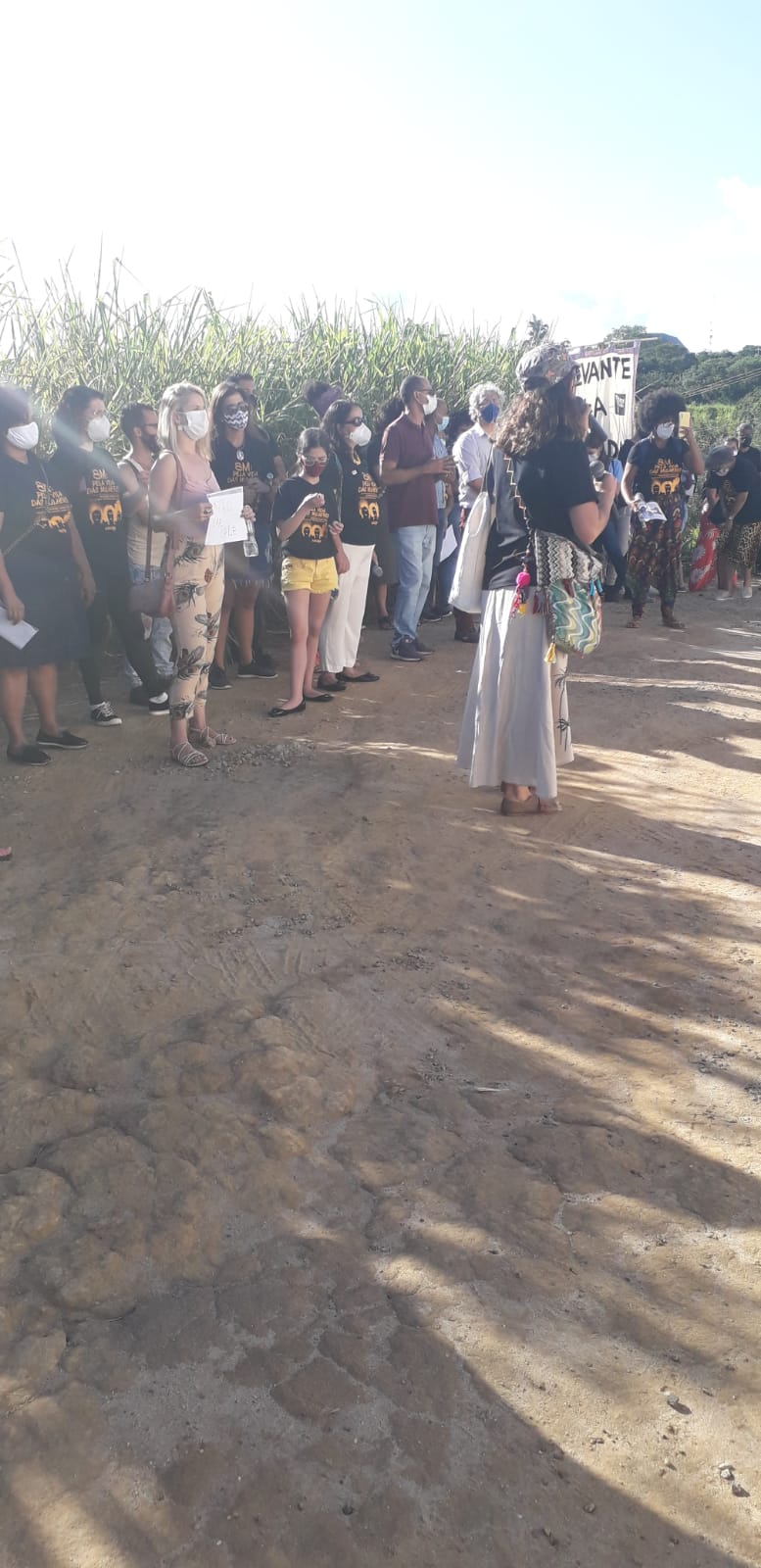 - Manifestantes reunidos em frente ao módulo Luizão.. Foto: Leaine Oliveira/Avoador