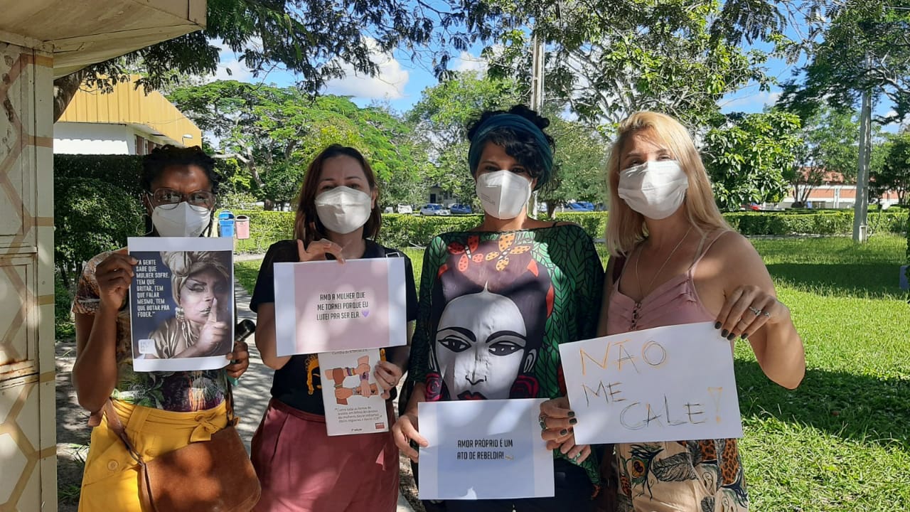 - Em frente ao prédio da administração da Uesb, professoras se manifestaram sobre atitudes machistas. Foto: Leaine Oliveira/Avoador