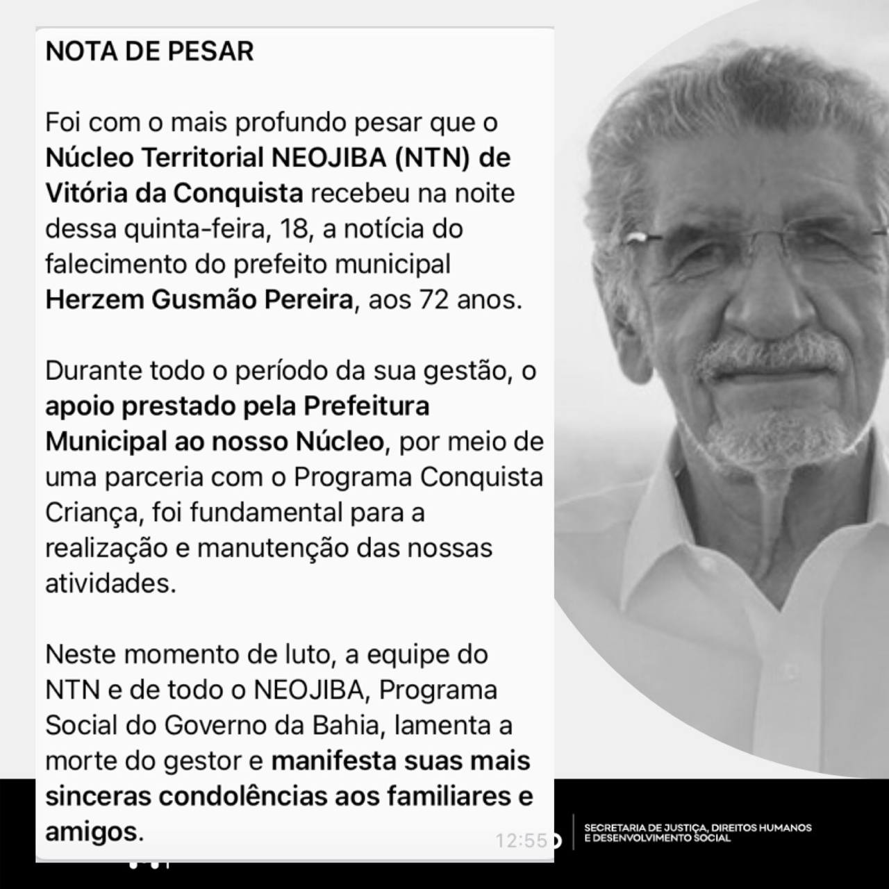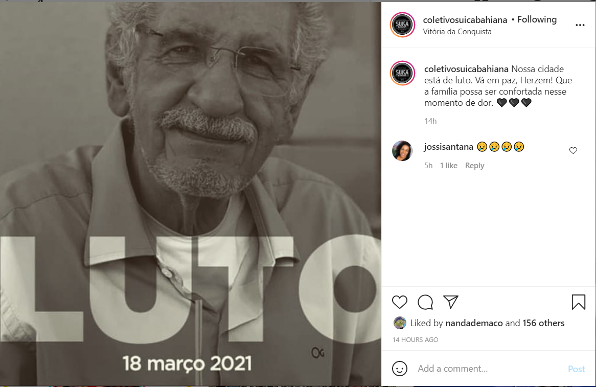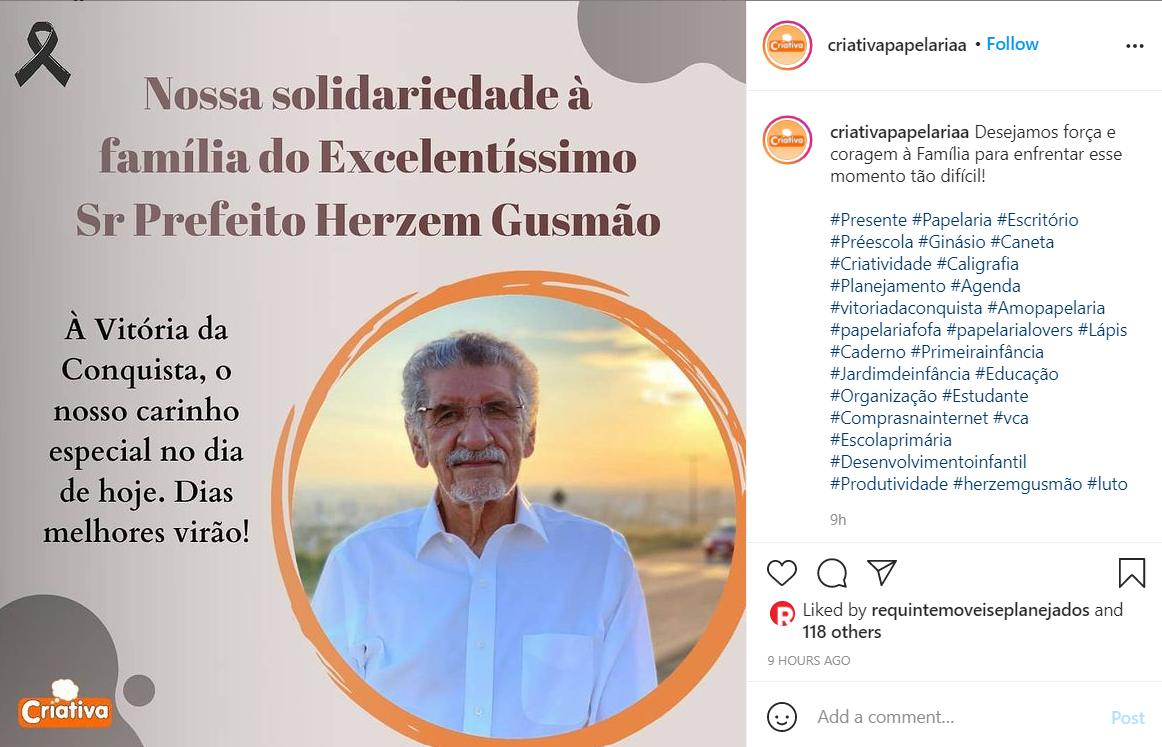 Representantes dos mais diversos setores comungam do sentimento de solidariedade em razão do falecimento do prefeito conquistense. Coopmac, TV Sudoeste, Colégio Nossa Senhora de Fátima Sacramentinas, Unimed do Sudoeste, Coletivo Suíça Baiana, Núcleo Territorial Neojiba (Núcleos Estaduais de Orquestras Juvenis e Infantis da Bahia) e Papelaria Criativa foram algumas das várias entidades e empresas que celebraram a memória do prefeito.