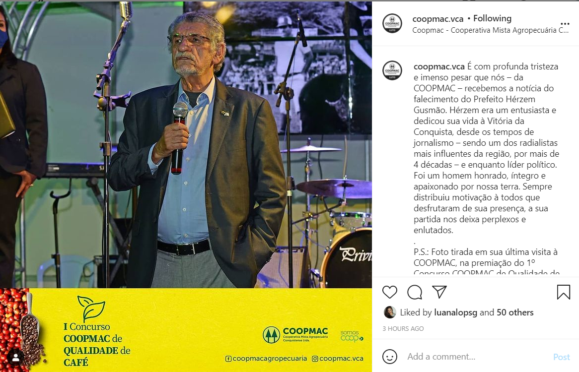 O ex-prefeito de Salvador, ACM Neto, que também apoiou a candidatura de Gusmão nas eleições de 2020 para prefeito de Conquista em 2020, prestou sua homenagem declarando que além de parceiro político, Herzem também era um grande amigo.