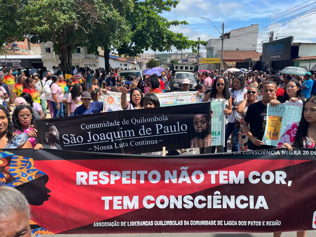 De acordo com os organizadores este foi o ano do evento com mais participação de pessoas e de representantes políticos 3 de dezembro de 2024 Arthur Vitor e Denilson SoaresNo último sábado (30/11), em Vitória da Conquista, foi realizado o “Novembro: Mês da Consciência Negra”, que reuniu 900 pessoas das comunidades quilombolas do sudoeste baiano, além de lideranças da esfera política federal, estadual e municipal. O evento contou com uma caminhada, das 9h30 às 10h20, da Praça Nossa Senhora dos Verdes à Paróquia Rainha da Paz, onde foi realizada uma plenária com tema Igualdade Racial,