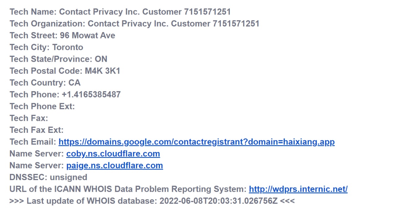 Também buscamos identificar o tipo de link existente na mensagem. Para isso, convidamos o professor do curso de Ciências da Computação, Hélio Lopes, para fazer uma análise Segundo ele, o endereço eletrônico está registrado no domínio hauxiang.app em Toronto, no Canadá, e que o seu objetivo é roubar os dados de quem preencher o formulário. Além disso, o número de telefone utilizado nos disparos no Whatsapp também é canadense.