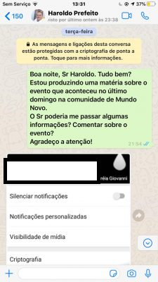 O número de telefone pessoal da jornalista foi exposto pelo prefeito em suas páginas oficiais na internet. Foto: Print/ Facebook