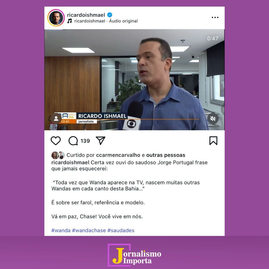 Ela trabalhou durante 27 anos na TV Bahia e era ativa no movimento negro contra o racismo 3 de abril de 2025 Nanda Deda e Pedro MeirelesA jornalista e ativista, Wanda Chase, morreu no Hospital Tereza de Liseux, em Salvador, na madrugada desta quinta-feira (03/04), após complicações em uma cirurgia no coração. Durante 27 anos, ela atuou na TV Bahia como repórter.