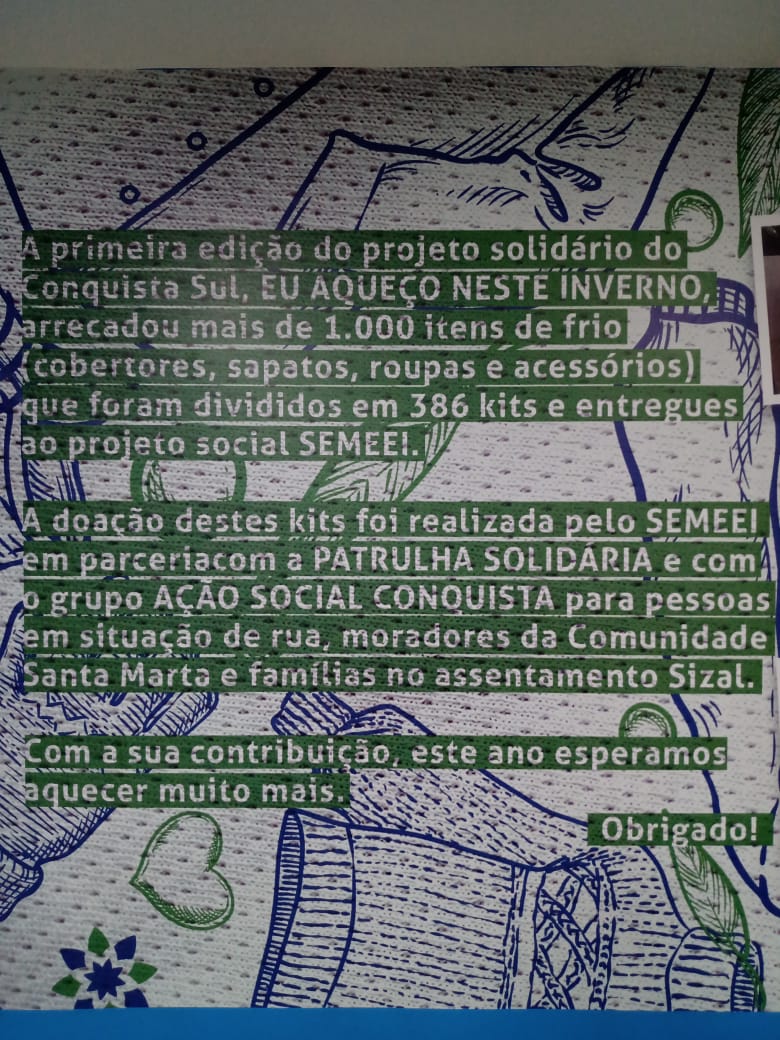 2 de agosto de 2022 Victória Meira Amaral e Rebeca SpínolaNesta segunda-feira (01/08), a segunda edição da campanha “Eu Aqueço neste Inverno” foi lançada no Shopping Conquista Sul. A inciativa é uma ação social que envolve 13 instituições de Vitória da Conquista, entre elas a Uesb por meio do site Avoador.
