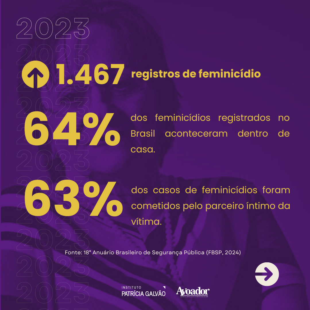 Apesar da lei, em 2023, todas as formas de violência contra as mulheres aumentaram no Brasil. Em dados divulgados pelo 18° Anuário Brasileiro de Segurança Pública (FBSP, 2024), foram registrados 1.467 casos de feminicídio, dentre eles, 64% aconteceram dentro de casa e 63% foram cometidos pelo parceiro íntimo da vítima. Os casos de violência doméstica também cresceram, o país teve um aumento de 10% em relação ao ano anterior (2022).