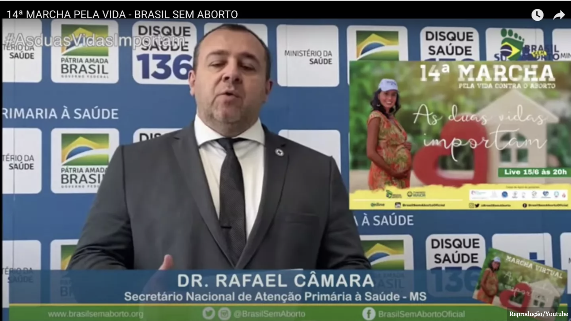 O Secretário Nacional de Atenção Primária à Saúde, Rafael Câmara, aparece em vídeo da 14ª Marcha pela vida