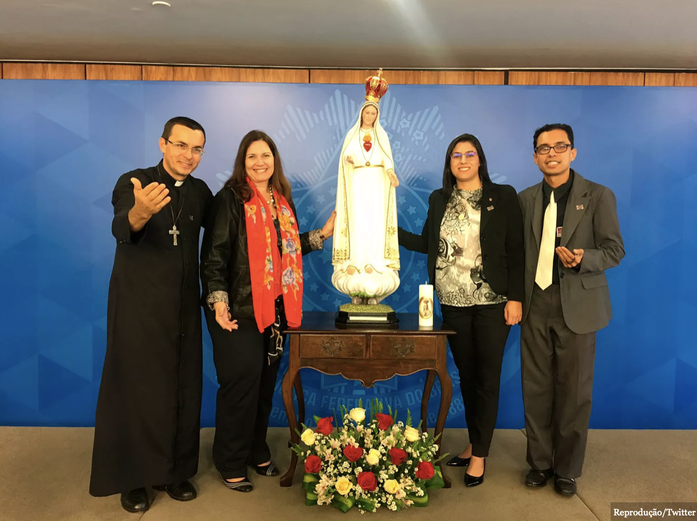 “Consagração do Brasil ao imaculado coração de Maria no Palácio do Planalto com @jairbolsonaro” diz a deputada Bia Kicis em seu Twitter