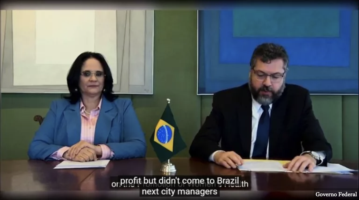 A Frente Parlamentar Latino-Americana em Defesa da Vida e da Família é uma das ações de uma agenda internacional antiaborto da qual faz parte o Ministério da Mulher, Família e Direitos Humanos. A ministra Damares tem participado de encontros com partidos e instituições conservadoras em vários países, como Argentina, Estados Unidos e Hungria. Sob comando de Damares e do ex-ministro das Relações Exteriores Ernesto Araújo, o Brasil assinou uma declaração internacional antiaborto. A aliança foi puxada pelo antigo governo norte-americano, junto com países ultraconservadores europeus e árabes. Com a saída dos EUA após a deposição de Trump, o Brasil vem tentando assumir a liderança da aliança ultraconservadora antiaborto no mundo.