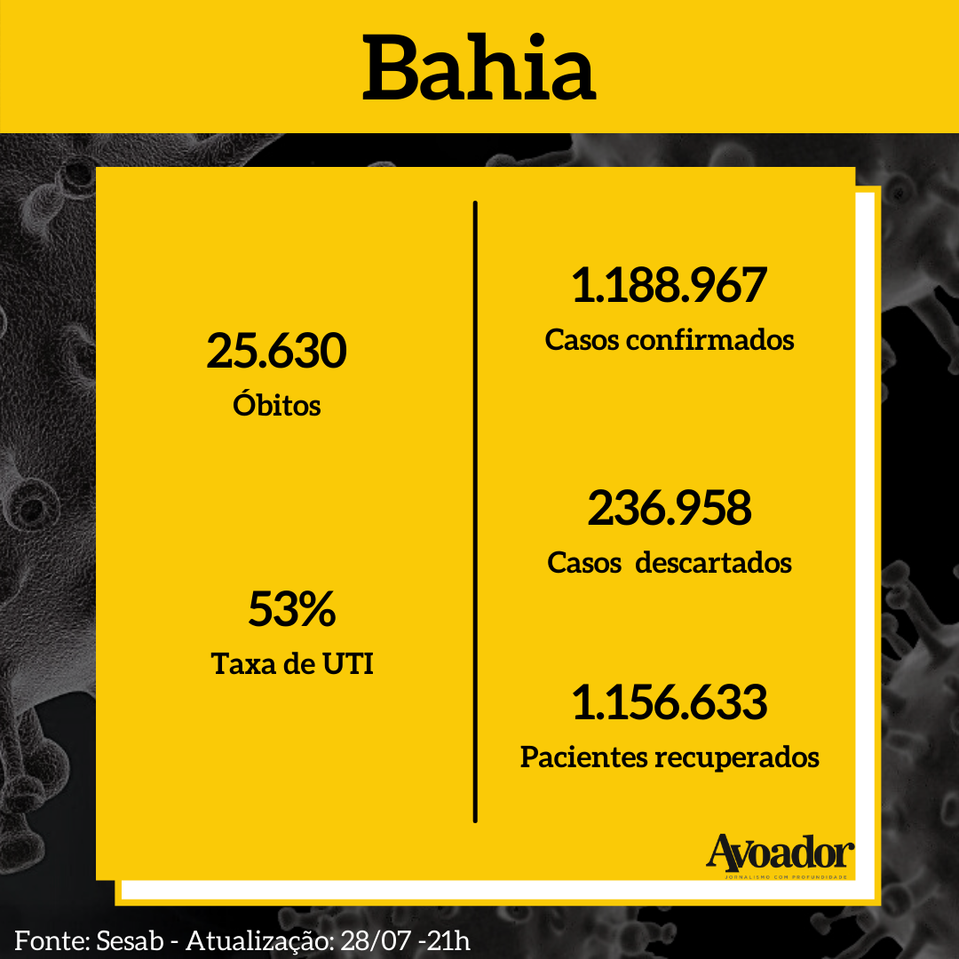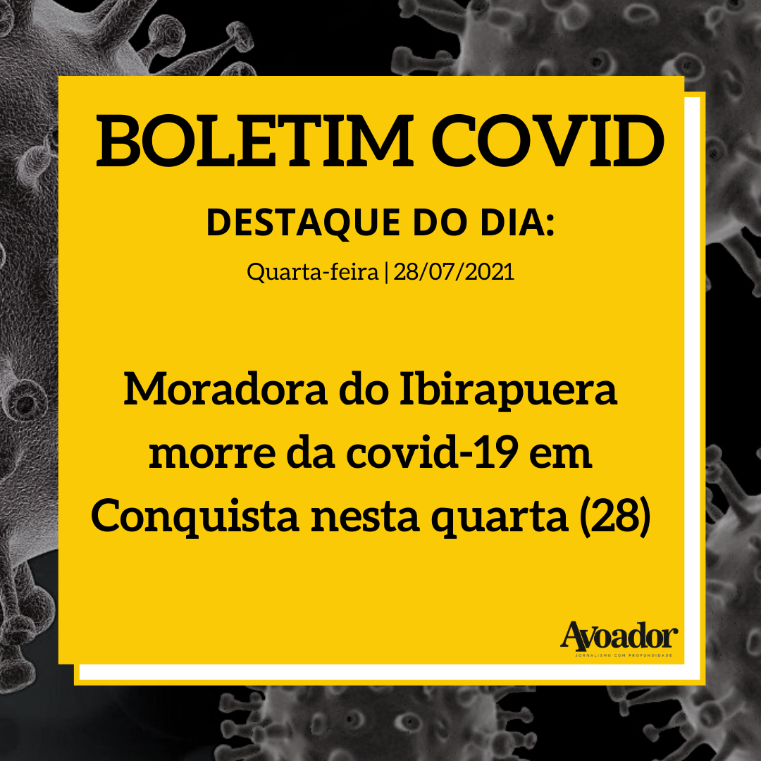 Confira a atualização dos números da covid-19 desta quarta-feira, 28 de julho de 2021 28 de julho de 2021 Mariana OliveiraVitória da Conquista perde mais uma vítima para a covid-19 e registra 65 novos casos nesta quarta-feira (28/07). No total, a cidade contabiliza 582 mortes causadas pelo novo coronavírus e 33.909 casos confirmados desde o início da pandemia.