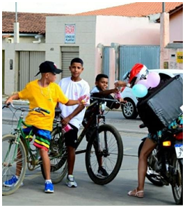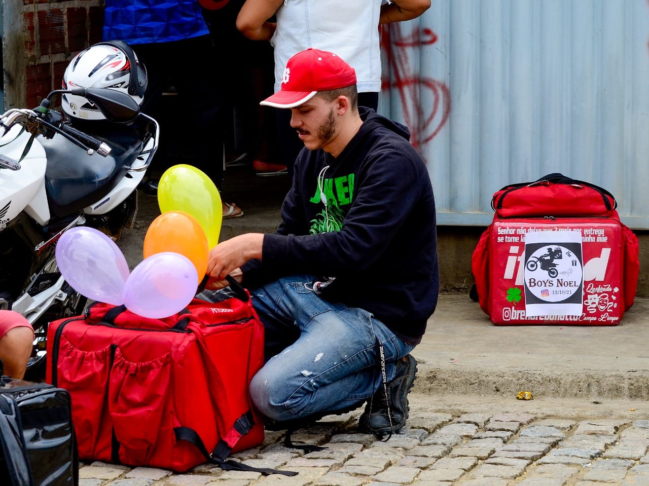 Em meio aos desafios da profissão, os motoboys Jônatas Lima Borges e Daniel Santos Silva e um grupo de amigos entregadores de delivery, ao perceberem as dificuldades financeiras trazidas pela pandemia para muitas famílias, organizaram o projeto Boys Noel. Por meio dessa ação social, eles têm realizado a arrecadação e distribuição de alimentos, brinquedos, entre outros itens, em Conquista.