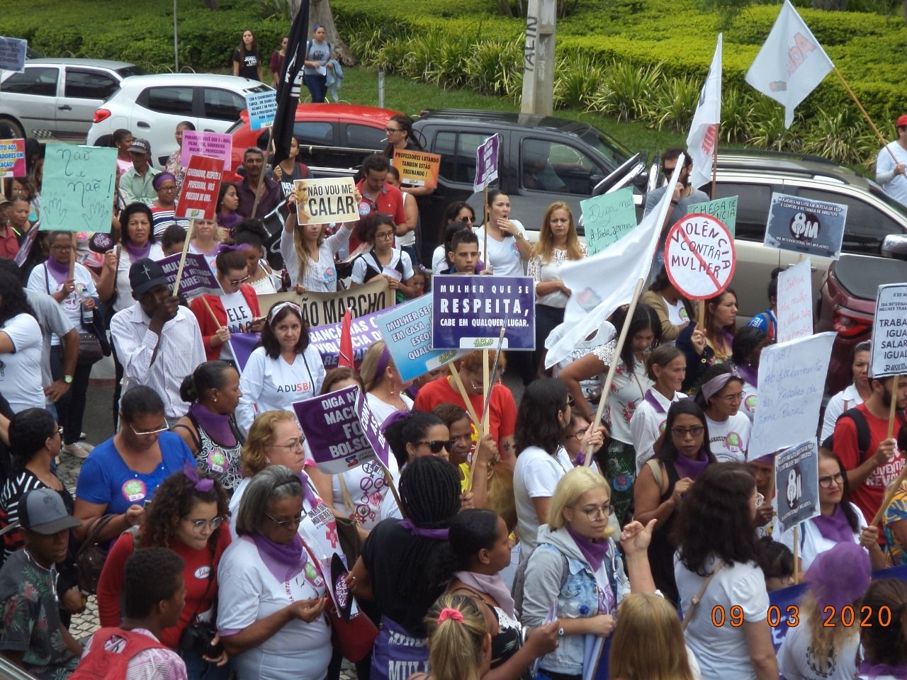 De acordo com a diretora da Adusb (Associação dos Docentes da Uesb), Sandra Ramos, “o 8 de março tem uma representação histórica porque, por meio de greves e manifestações, as mulheres conseguiram reivindicar seus direitos. Hoje, estamos fazendo esse ato na rua para defender os nossos direitos.”