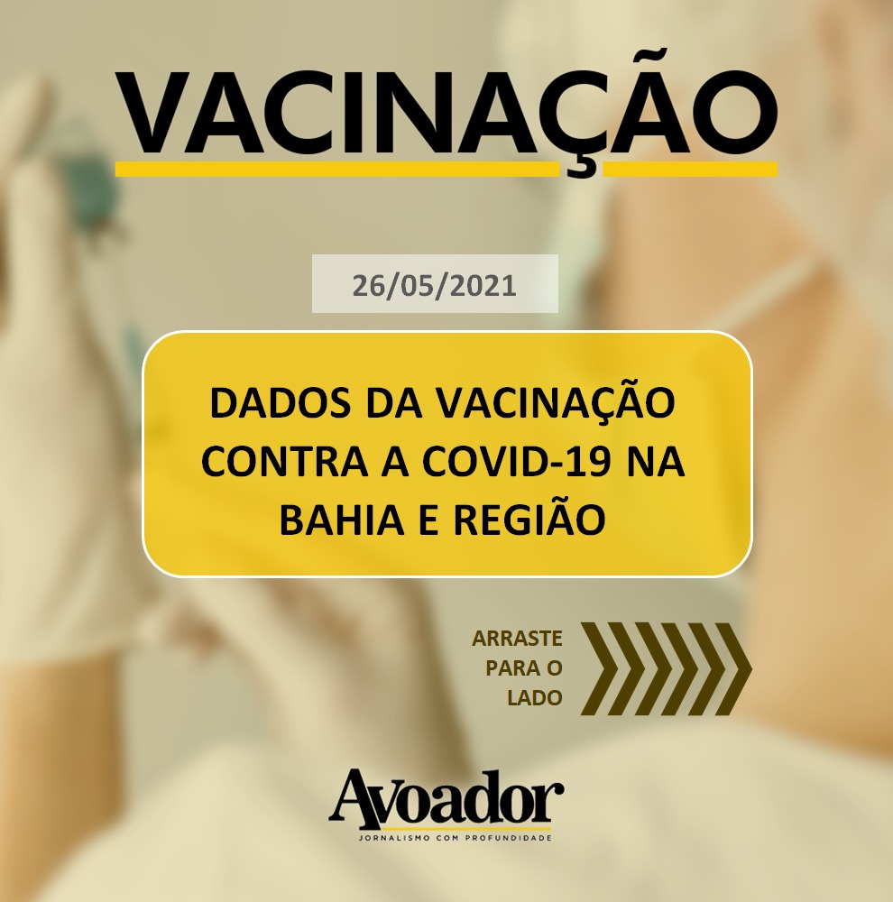 Acompanhe abaixo os dados da vacinação em Vitória da Conquista e em cidades da região Sudoeste e Sul, desde o início da aplicação até hoje (26/05).