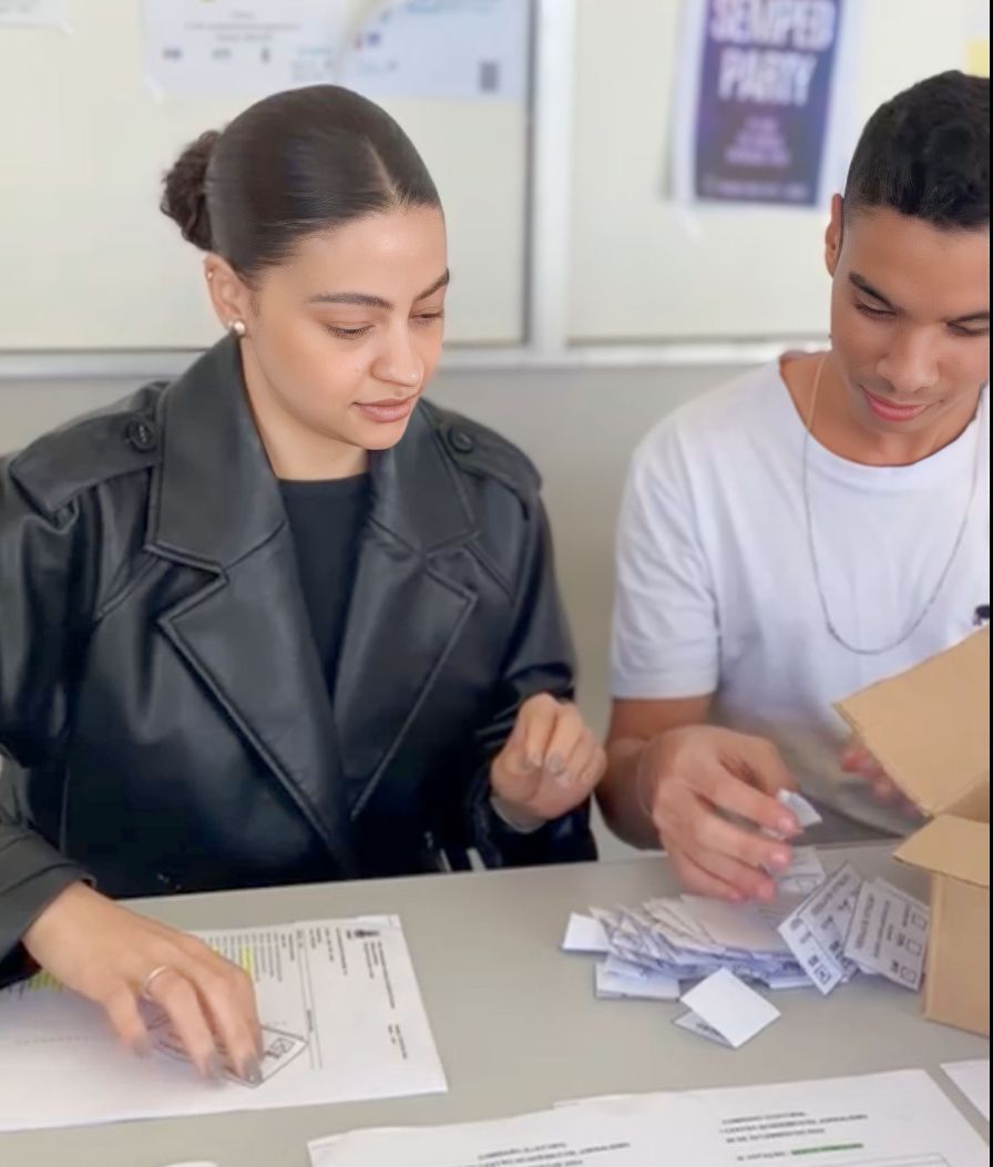 - A comissão eleitoral, formada pelos estudantes Yasmin Kazlauskaite, Arthur Vitor França e Driele Braga, foi responsável pela organização e monitoração da votação. Foto: Aelson Vasconcelos